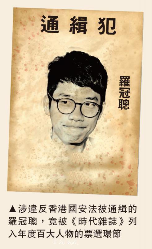 被通緝並已潛逃海外的羅冠聰竟被《時代雜誌》(TIME)列入年度百大人物的票選環節,更被形容為「香港民主運動領袖」,對此有市民嘲諷實為「瘋暈人物」,認為「時代變咗反社會主題,愈亂港,愈上位」。亦有「手足」質疑其上位資格,直指羅...[详细]