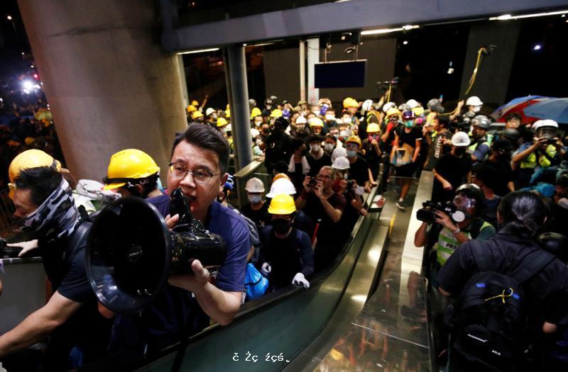立法會內會反對派多人包圍主席台被逐離