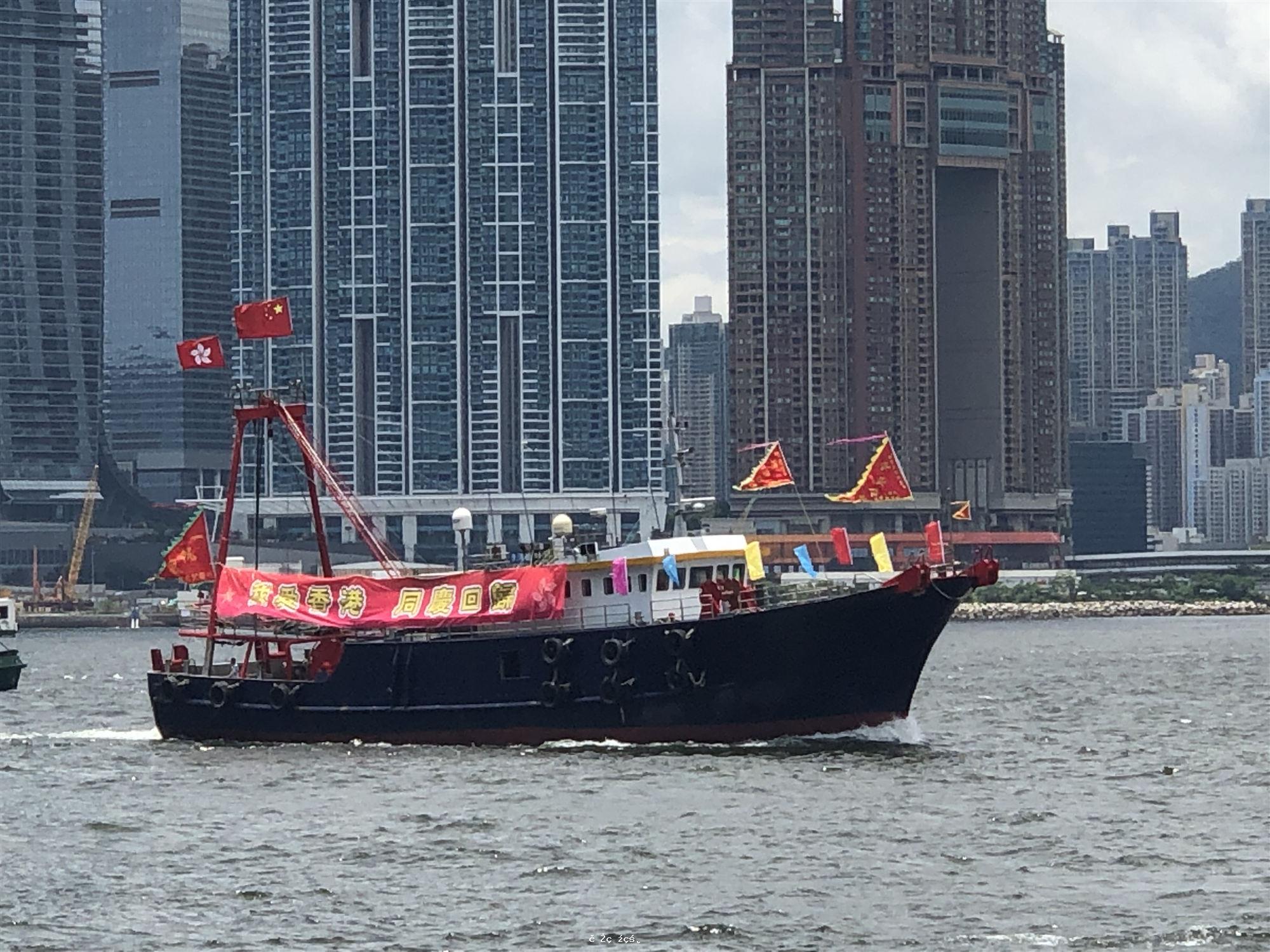 7月1日中午1時,香港漁民團體聯會發動70艘漁船在中環海域舉行慶回歸巡遊。漁船船身份別懸掛有「我愛香港 同慶回歸」「紫荊花盛開 同心創未來」「依法辦事 警察無錯」「支持香港特區政府依法執政」等標語,排列駛向尖沙咀方向。 [详细]