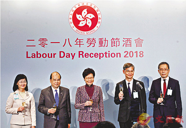 ■林鄭月娥(中)重申特區政府高度重視勞工權益。 香港文匯報記者曾慶威 攝指政府願「落水」深一些 實事求是為打工仔謀福祉特區政府昨日舉行勞動節酒會,工聯會等多個工會及勞工顧問委員會多名成員都有出席。行政長官[详细]