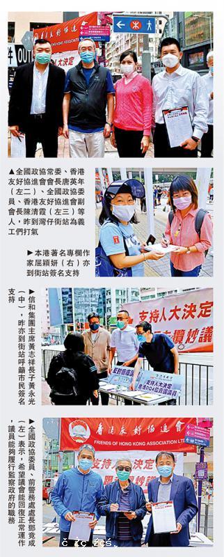 市民街站踴躍簽名 支持DQ撐暴議員全國人大常委會11日就香港特區立法會議員資格問題作出決定,特區政府當日宣布攬炒派郭榮鏗等四人喪失議員資格。連日來,本港各界團體在多區設街站,舉行「支持人大決定踢走攬炒議員」簽名大行動。昨日各區的簽名街站人頭湧湧,主動簽名...[详细] 2020-11-15 12:06 分类:港人港語