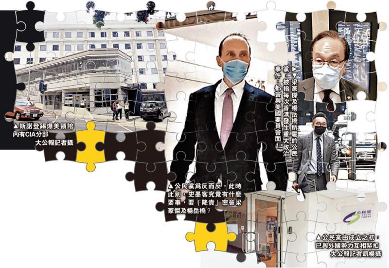 公民黨四人日前被取消立法會參選資格(DQ),梁家傑、楊岳橋等公民黨核心成員前日被踢爆在中環密會美國駐港總領事史墨客(Hanscom Smith)。梁家傑聲稱是「恆常會面」。大公報發現,每逢香港出現重大政治事件,公民黨必與美方要員會面。梁...[详细]