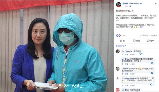 香港立法會議員葛珮帆於22日在社交媒體發貼表示,本月11日在港鐵馬鞍山站附近天橋,被暴徒點火燒傷的57歲男子李伯已經甦醒,情況穩定,可以說話但聲線微弱。葛珮帆續指,已將第一批代收的支票親手給李太,李太向愛心人士表達感謝。 [详细]