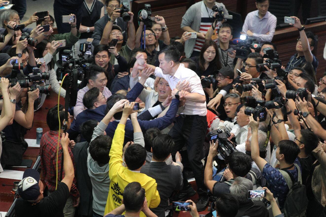 曾鈺成:立法會自我約制功能已徹底崩潰香港立法會法案會議審議修訂《逃犯條例》,反對派議員瘋狂搗亂會場(全媒體記者麥鈞傑攝)大公文匯全媒體報道:香港反對派立法會議員昨日(11日)暴力沖擊阻撓修訂逃犯條例會議,導致3名建制派議員在衝突中受傷,需要[详细] 2019-05-12 17:27 分类:保卫香港运动