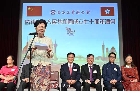 香港行政長官林鄭月娥於22日出席香港工聯會慶祝中華人民共和國成立七十周年酒會。林鄭月娥致辭時表示,在過去一段時間,香港社會面對極大挑戰,持續出現的暴力對打工仔女的工作和生活都有很大的影響,特區政府一定會竭盡全力止暴制亂,...[详细]
