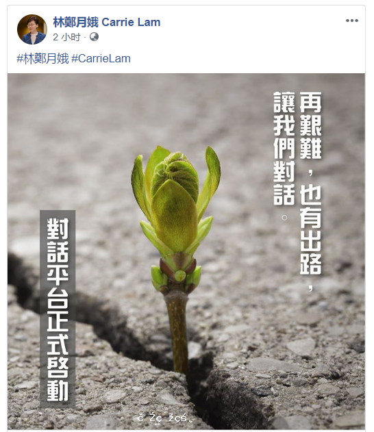 林鄭月娥發貼 稱對話平台正式啟動