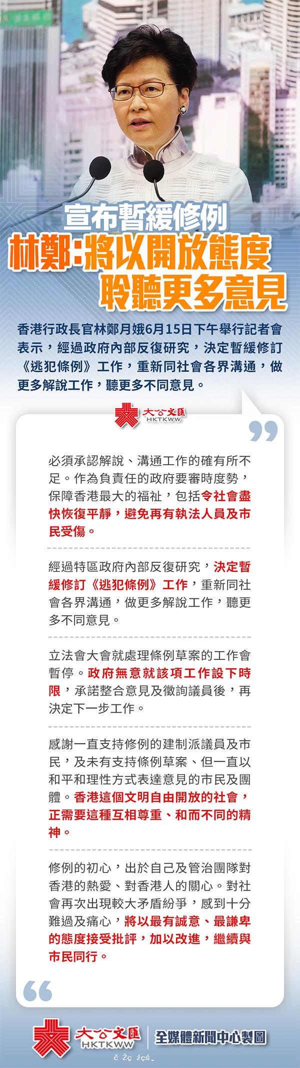 懶人包 | 宣布暫緩修例 林鄭:將以開放態度聆聽更多意見