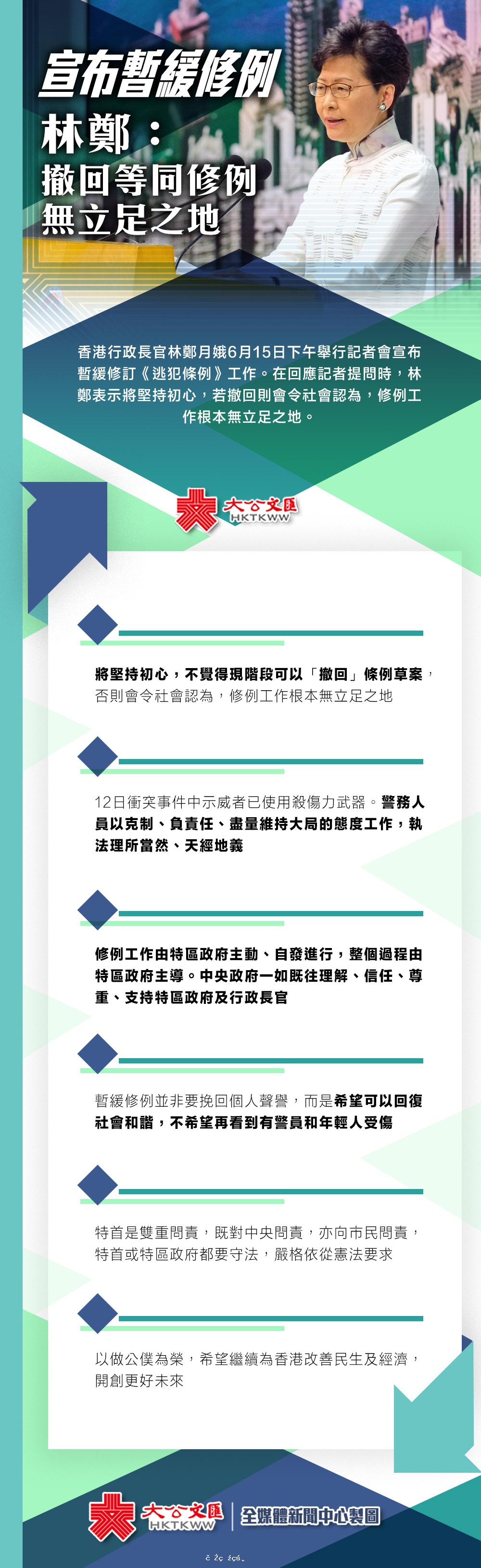 懶人包 | 宣布暫緩修例 林鄭:撤回等同修例無立足之地