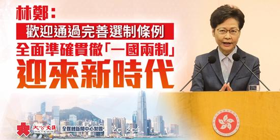 林鄭:歡迎立會通過選制修例 全面準確貫徹「一國兩制」迎來新時代