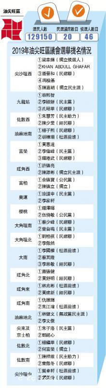 油尖旺區議會今屆由19席增至20席,而選民人數是18區之中第四少,只有129150人。民建聯派出九人團隊出選,其中八人爭取連任。油尖旺區是暴亂的重災區,民建聯候選人的辦事處多次被破壞。就在立法會議員何君堯遇刺的同一天,參選油尖旺南的...[详细]