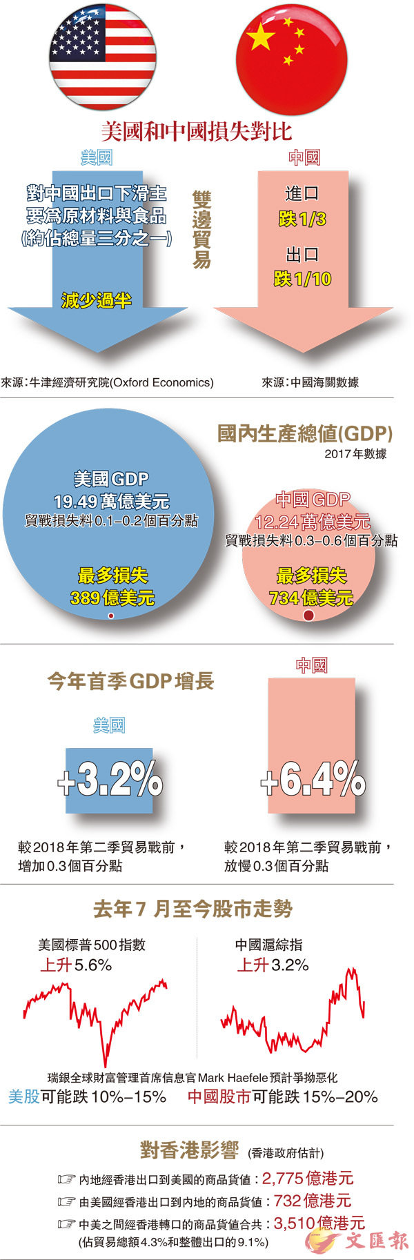 美國繼上周五對2,000億美元中國貨加徵關稅至25%後,再決定對其餘3,250億美元的中國貨品加稅,中國昨晚亦宣佈反制措施,貿易戰升級。多個研究機構、外資投行、國際商會等權威機構的數據顯示,貿易戰令中美兩國的經濟、[详细]