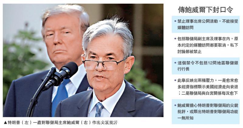 外電消息透露,聯儲局主席鮑威爾為應對美國總統特朗普的尖銳批評,要求包括副主席在內的理事不再接受媒體訪問,也要取消出席公開活動,避免聯儲局與特朗普之間矛盾加深。 [详细]