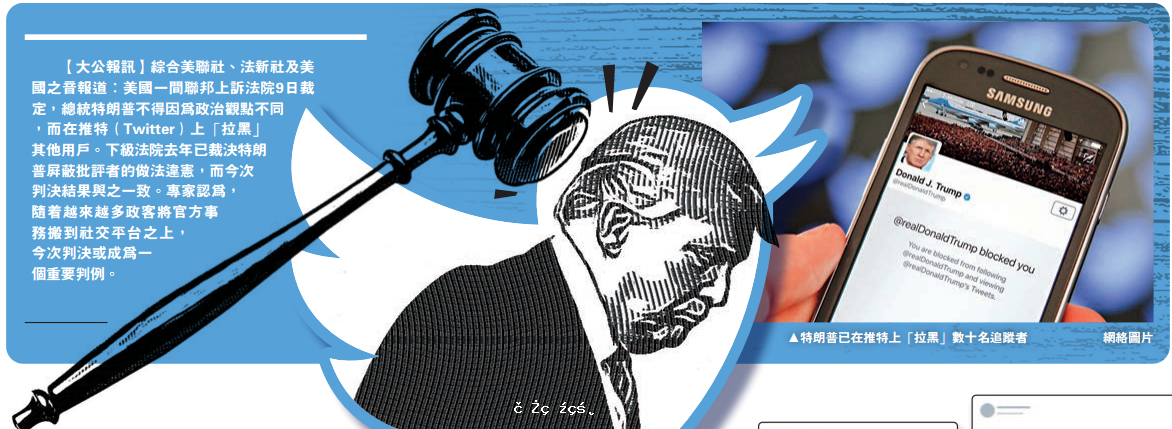 綜合美聯社、法新社及美國之音報道:美國一間聯邦上訴法院9日裁定,總統特朗普不得因為政治觀點不同,而在推特(Twitter)上「拉黑」其他用戶。下級法院去年已裁決特朗普屏蔽批評者的做法違憲,而今次判決結果與之一致。專家認為,隨着...[详细]