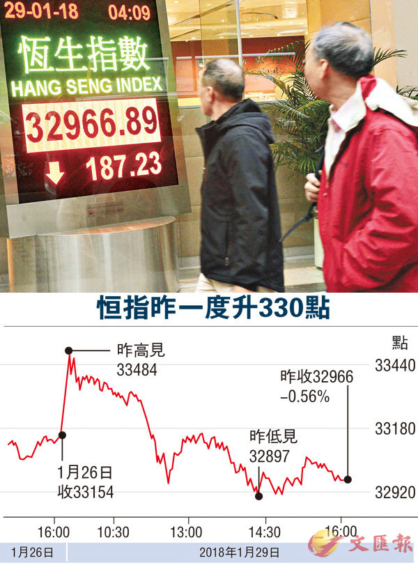 ■港股昨創新高後倒跌,成交1,922億元。 中新社結算前夕兼臨美議息 資金獲利避險 在美國議息及期指結算前夕,加上美國總統特朗普今日將發表國情咨文,市場憂慮美國會否啟動針對中國的貿易戰,港股高開約330點見[详细]