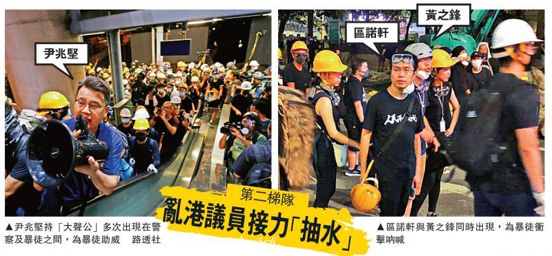 當黎智英離開後,現場形勢便急轉直下,大批自稱「敢死隊」的黑衣暴徒突然發難,不僅拆毀交通護欄,還從鐵欄上拆下鐵枝向警方施襲。與此同時,亂港派第二梯隊陸續登場,除了混在黑衣暴徒中扮指揮的「港獨」分子梁金成之外,「議會陣線」朱...[详细]