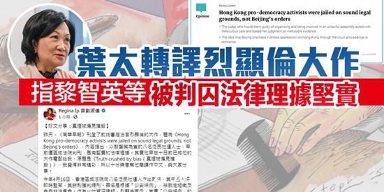新民黨主席、立法會議員葉劉淑儀今日(30日)在社交平台分享一則文章,指有英文報紙昨日刊登特區終審法院前常任法官列顯倫的大作,題為《Hong Kong pro-democracy activists were jailed on sound legal grounds, not Beijing』s orders》,...[详细]