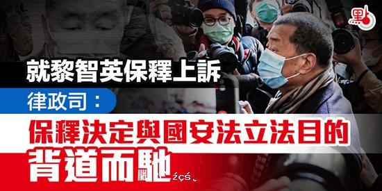 就黎智英保釋上訴 律政司:保釋決定與國安法立法目的背道而馳
