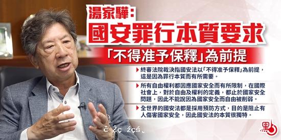 湯家驊:國安罪行本質要求「不得准予保釋」為前提
