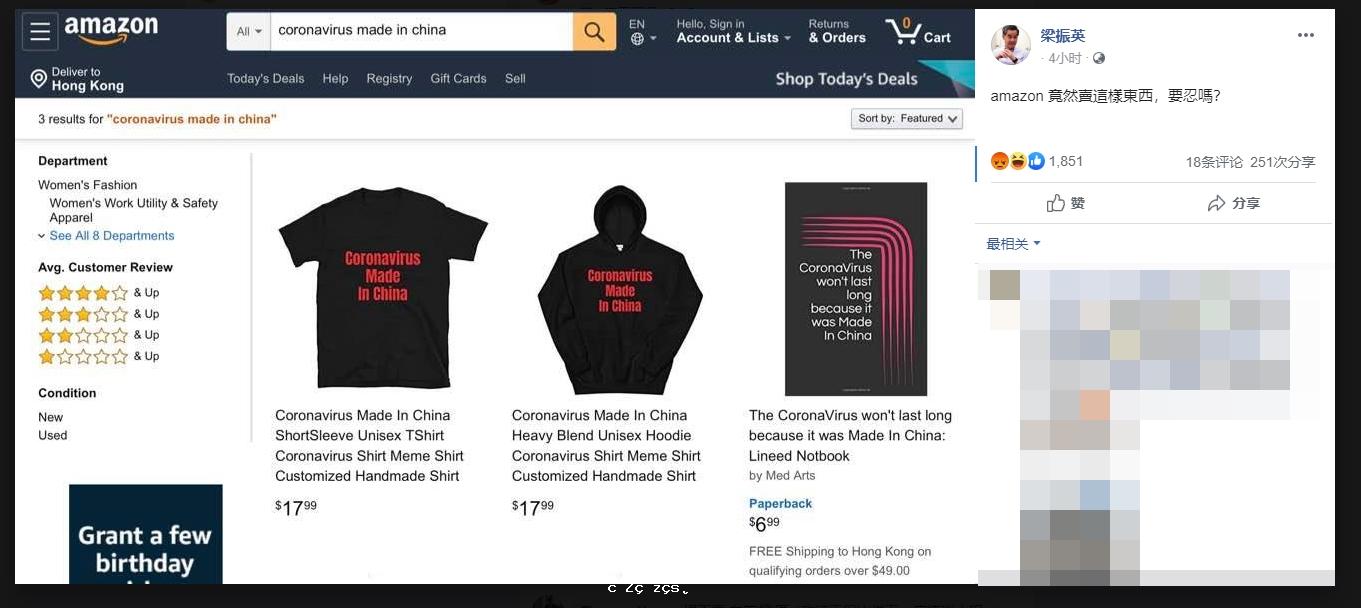 亞馬遜上架「冠狀病毒產自中國」商品 梁振英斥「要忍嗎」