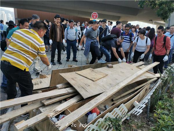 港市民自發往紅磡清障 怒斥暴徒打爛香港毀民生