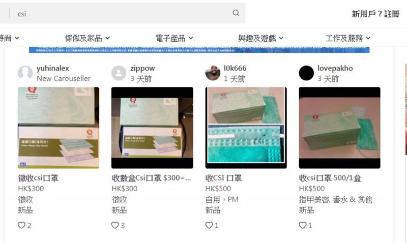網上高價徵收CSI口罩 警主動調查