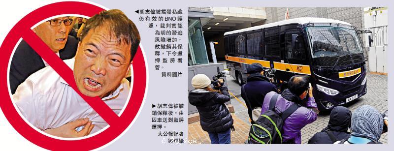 民主黨前主席胡志偉日前涉違反香港國安法被捕後,被揭發私藏仍有效的英國國民(海外)護照(BNO),涉蓄意違反另一宗未經批准集結案的保釋條件,昨被押解往西九龍法院應訊,控方稱可能加控作出虛假聲明及誤導警員等罪。胡志偉一方聲稱未有...[详细]