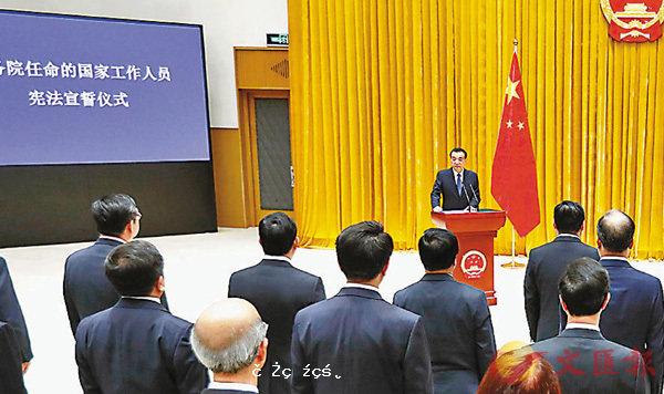 ■昨日,國務院舉行憲法宣誓儀式,總理李克強監誓。中新社 據新華社報道,國務院8日在中南海舉行憲法宣誓儀式。國務院總理李克強監誓。[详细]