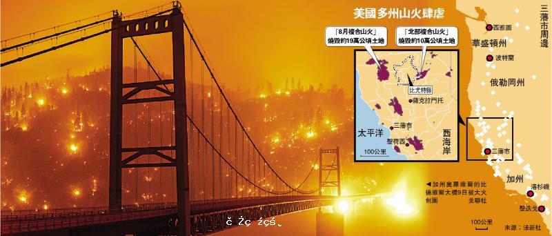 綜合美聯社、《紐約時報》、《今日美國報》報道:美國西岸山火持續惡化,約100處火頭未受控。在重災區加州、華盛頓州及俄勒岡州,已有至少23人死亡,1.8萬平方公里土地被燒毀。在俄勒岡,超過50萬人被迫撤離,州長布朗形容這場災難帶來...[详细]