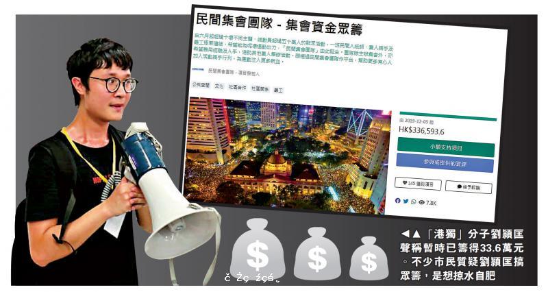 泛暴派覷準暴亂可生財,趁亂掠水,發起一個名為「民間集會團隊」組織並發起眾籌,企圖在民陣外另築「大台」。團隊代表、在暴亂中經常充當遊行集會申請人的「港獨」分子劉頴匡聲言,今次眾籌沒有目標金額,主要用於舉辦日後集會。若然款項...[详细]
