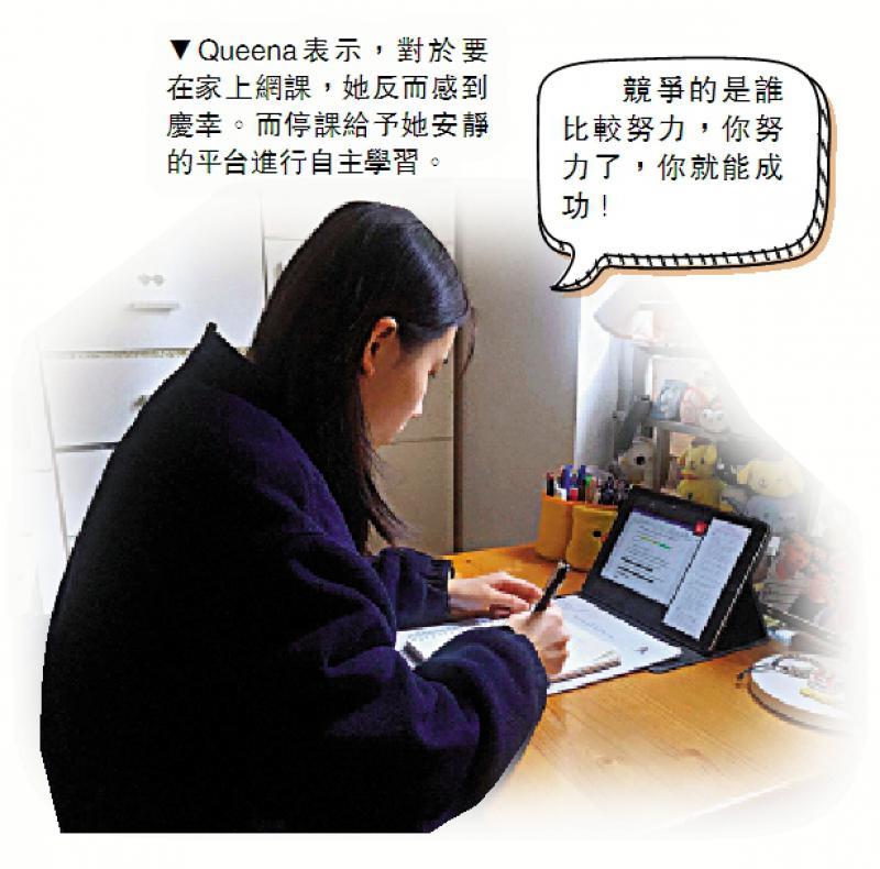 就讀於九龍區一所英文中學的應屆文憑試考生Queena,對於要在家上網課,她反而感到慶幸。「老師有老師上堂教書,我有我自己溫書。」Queena指出,停課給予她安靜的平台進行自主學習。 [详细]