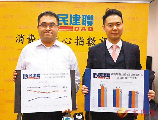 ■民建聯公佈最新消費者信心指數。右起周浩鼎、杜礎圻。 香港文匯報記者殷翔 攝六成人睇淡經濟展望 民記倡增扣稅額扶民生民建聯昨日公佈最新「消費者信心指數」,三項主要指標均告下滑,當中「綜合消費者情緒指數」由[详细]