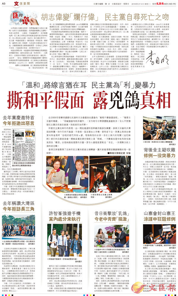 「溫和」路線言猶在耳 民主黨為「利」變暴力由2009年發聲明譴責社民連的立法會議員在議會內「動粗干擾會議進程」、「傷害立法會的尊嚴」、「阻礙議會有秩序運作」,至今時今日帶頭擾亂議會秩序,令人不禁懷疑民主黨近[详细]