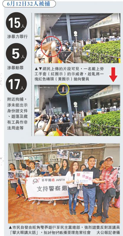 約20名支持警方執法的市民昨日自發由旺角警署遊行至民主黨總部,強烈譴責反對派議員「擘大眼講大話」,批評他們散播歪理危害社會,聲稱警方襲擊「手無寸鐵」的示威者,實情是暴徒以磚頭、鐵支及鐵馬襲擊警察,破壞社會安寧。他們又直斥...[详细]