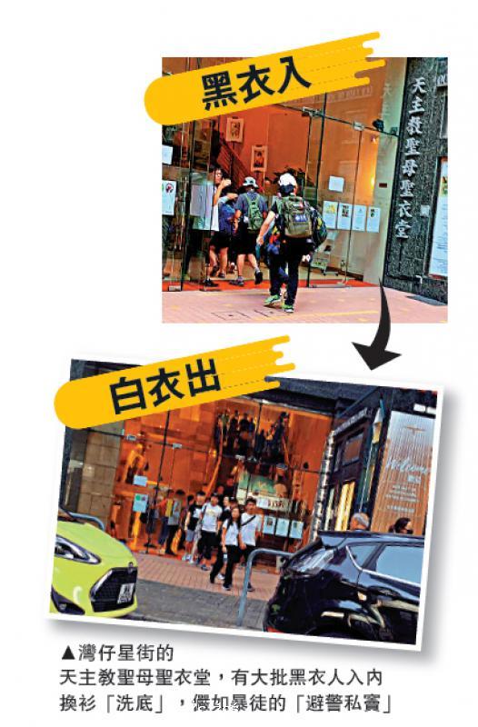 灣仔、金鐘一帶昨日又淪為暴亂現場,暴徒下午開始集結到處設置路障及縱火,街上店舖差不多全都關門避禍之際,大公報記者現場直擊,在灣仔星街的天主教聖母聖衣堂、灣仔軒尼詩道的循道衛理聯合教會香港堂,儼如暴徒的「避警私竇」,不時有...[详细]