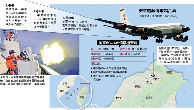 近日傳出美軍一架電子偵察機RC-135W飛越台灣北部上空,台空軍曾回應稱「此為假訊息」,不過,美國媒體22日報道稱,此事已得到美國空軍證實。對此,台「空軍司令部」23日發聲明再度否認,稱「經查詢10月21日並無美軍相關軍機飛越台灣本島上...[详细]