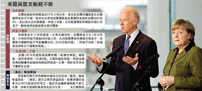 綜合《金融時報》、《華盛頓郵報》、《華爾街日報》報道:美國總統拜登上任首日就簽署行政令,推翻特朗普時期的政策,展現了他「重建美國領導地位」決心,但盟友在歡迎拜登上台的同時,也暗示不會未來事事聽命於華府。德國總理默克爾21...[详细]