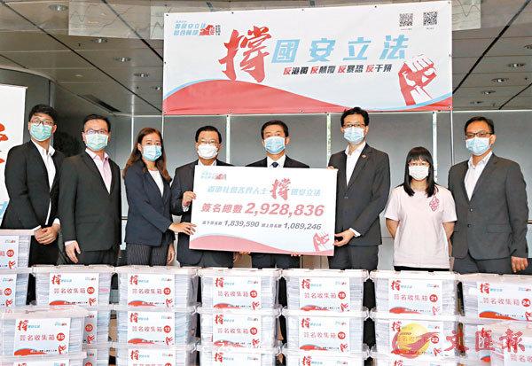 ■ 駱惠寧(右四)出席香港各界「撐國安立法」簽名交接儀式。 中聯辦主任駱惠寧昨日指出,依法防範、制止和懲治危害國家安全的行為和活動,將會為香港長期繁榮穩定提供堅實的安全屏障,將會更有效地保護香港居民的合[详细]
