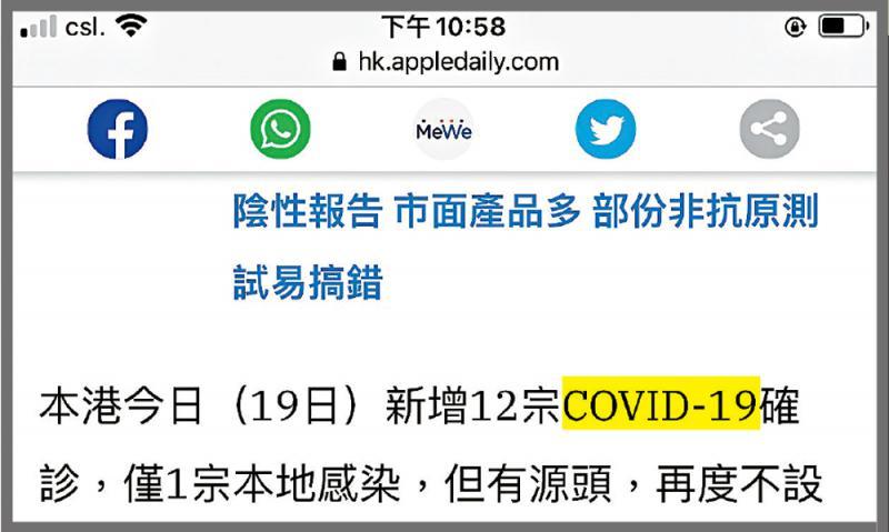 《蘋果》跪低 疫情報道停用「污名」