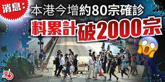 本港新冠肺炎疫情持續,消息指,截至今日(21日)凌晨新增約80宗確診個案。 衞生防護中心昨日公布,截至20日零時零分,單日新增73宗確診個案,本港個案累計1959宗。連同今日的確診個案,預料累計確診數字會突破2000宗大關。[详细]