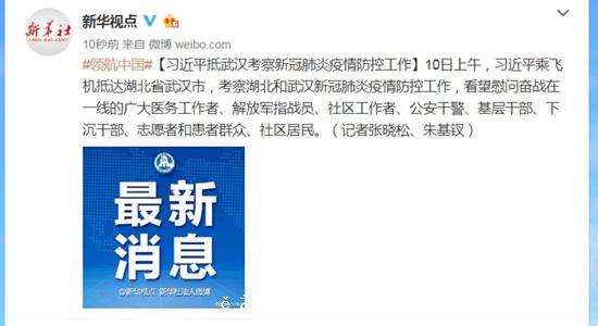 10日上午,習近平乘飛機抵達湖北省武漢市,考察湖北和武漢新冠肺炎疫情防控工作,看望慰問奮戰在一線的廣大醫務工作者、解放軍指戰員、社區工作者、公安幹警、基層幹部、下沉幹部、志願者和患者群眾、社區居民。 [详细]