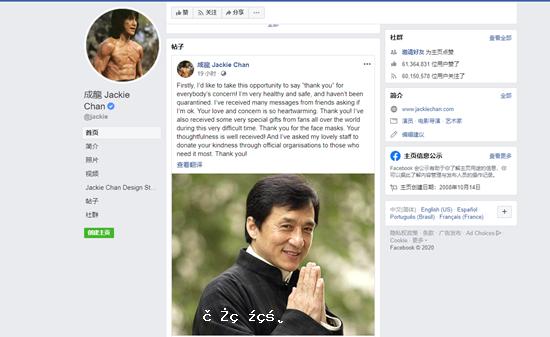 網傳染疫遭隔離 成龍闢謠:我非常健康