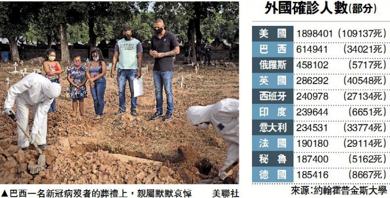 綜合法新社、中新社報道:拉美地區新冠疫情持續蔓延,累計確診病例近120萬。巴西是該地區疫情最嚴重的國家,新增染疫和死亡人數居高不下。總統博索納羅威脅稱,如果世界衞生組織繼續做一個「黨派政治組織」,巴西就要追隨美國的腳步退出...[详细]