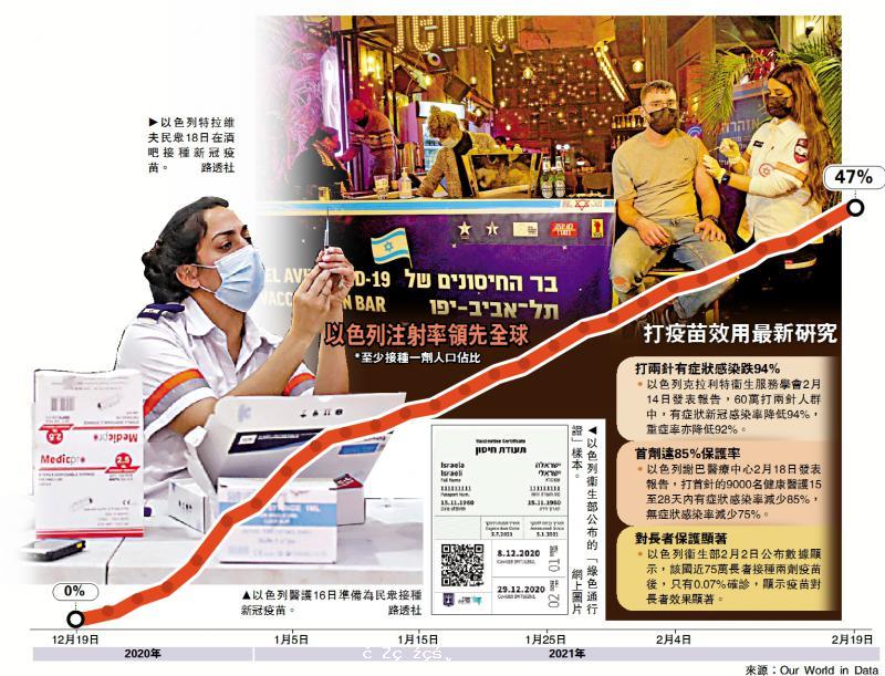 綜合《以色列時報》、《紐約時報》報道:以色列新冠疫苗接種率領跑全球,已有過半數民眾接種。該國近日宣布啟用作為接種證明的「綠色通行證」助力重開經濟,生活有望大致恢復正常。當局早落訂付高價「搶針」、國民醫療大數據助分派等早...[详细]