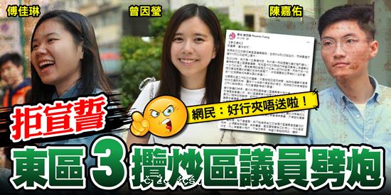 攬炒派近期出現的「辭職潮」持續,噚日一日之內再有3名東區區議員,包括曾因瑩、陳嘉佑及傅佳琳先後在fb稱不願宣誓,決定辭任區議員職務,並於6月1日起正式生效。 [详细]