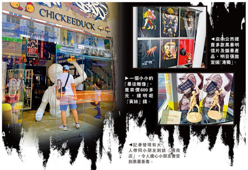 童裝店Chickeeduck老闆周小龍繼續販「獨」,近日於荃灣開設所謂「藝術生活百貨」。大公報記者現場所見,裝潢包括「光時」招牌和巨型「黑暴雕像」,店內售賣「光時」公仔及煽暴產品,明目張膽宣揚「港獨」。 [详细]