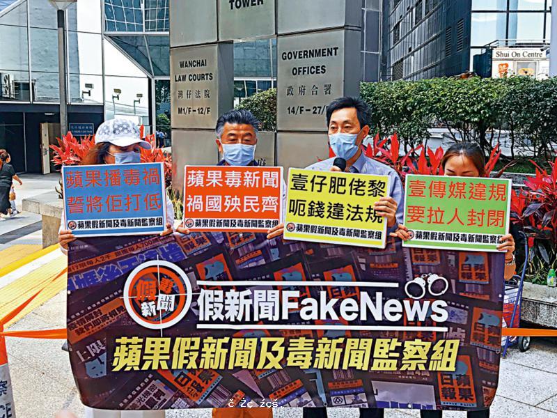 團體「蘋果假新聞及毒新聞監察組」昨天前往區域法院外請願,手持「壹仔肥佬黎 呃錢違法規 蘋果毒新聞 禍國殃民齊」等標語。要求法庭嚴懲這類違法圖利罪行。 [详细]