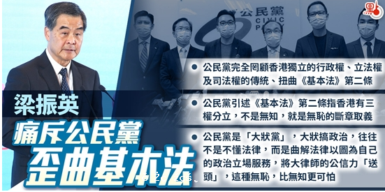 全國政協副主席、前香港行政長官梁振英今日(9日)在社交媒體撰文,痛斥公民黨引述《基本法》第二條指香港有三權分立,不是無知,就是無恥的斷章取義。[详细]