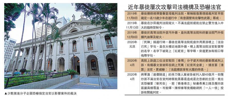 圖:少數激進分子企圖恐嚇指定法官以影響案件的裁決 【大公報訊】12月7日,中央人民政府駐香港特別行政區聯絡辦公室發言人發表談話,強烈譴責「炸彈恐嚇」負責處理國家安全犯罪案件的指定法官及其家人的違法暴戾行徑,堅決支持...[详细]