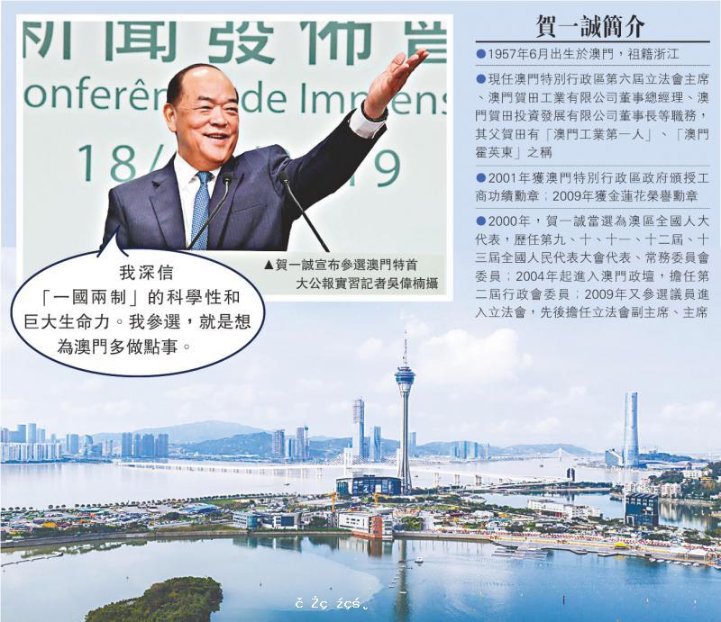下任澳門特首選舉將於8月25日舉行,澳門立法會主席賀一誠昨日正式宣布參選,並發表參選宣言。他表示,對澳門有深厚感情,參選是對澳門發展的關切和擔當。他會體察民情、聆聽民意,妥善處理社會多元訴求,平衡好各方利益,善用法治思維和法...[详细]