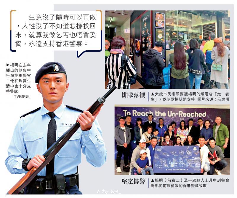 「生意沒了隨時可以再做,人性沒了不知道怎樣找回來,就算我做乞丐也唔會妥協,永遠支持香港警察。」藝人楊明因撐警被暴徒針對,他有份投資的燉湯店,更在元旦暴亂中遭打砸。但楊明仍不畏黑暴,他的勇敢打動了不少熱心市民。近日楊明在多...[详细]
